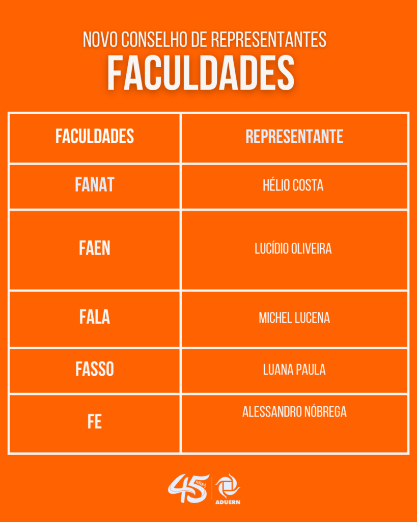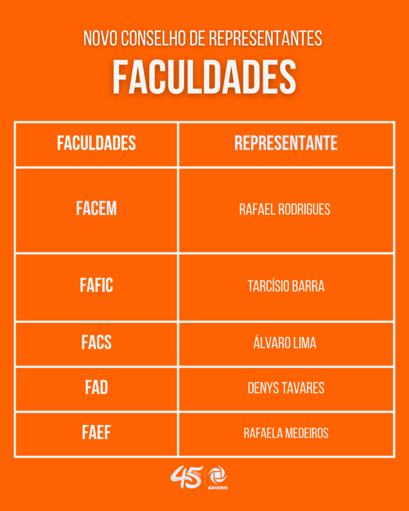 Em consonância com o edital eleitoral do conselho de representantes, 001/25, que rege o processo eleitoral do conselho de representantes da ADUERN, segue em ampla divulgação a lista com candidatos eleitos.