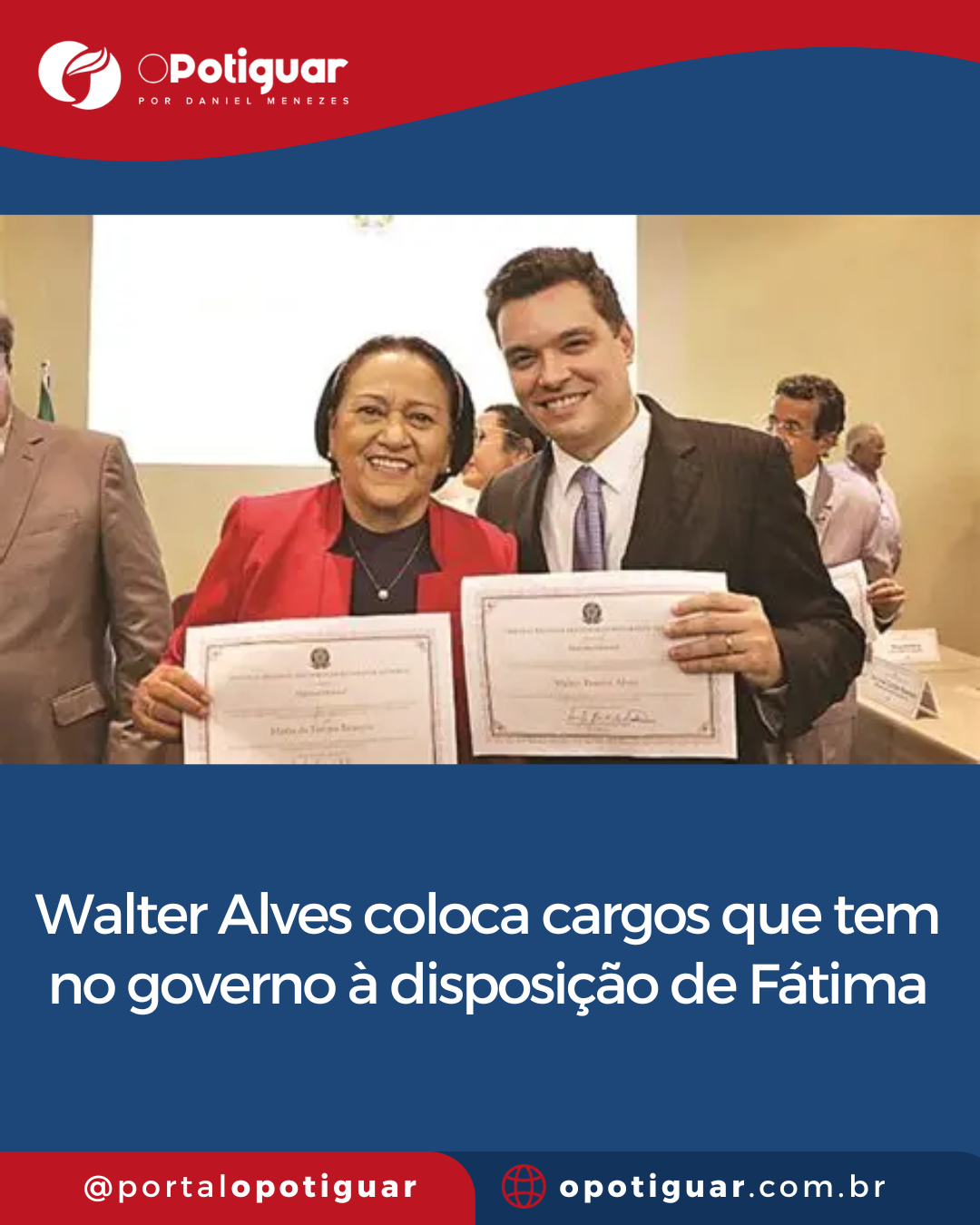 Um dia após afirmar, em nota pública, que não pretende assumir o Governo do Rio Grande do Norte e sinalizar apoio a Allyson Bezerra e ao PSD da senadora Zenaide Maia, o vice-governador Walter Alves deu novo passo político ao colocar os cargos que o MDB ocupa na administração estadual à disposição da governadora Fátima Bezerra. A movimentação aprofunda o clima de incerteza no governo, já que, até o momento, Fátima não se manifestou se aceita ou não a devolução dos espaços, mantendo em aberto o desfecho da relação política entre os dois.