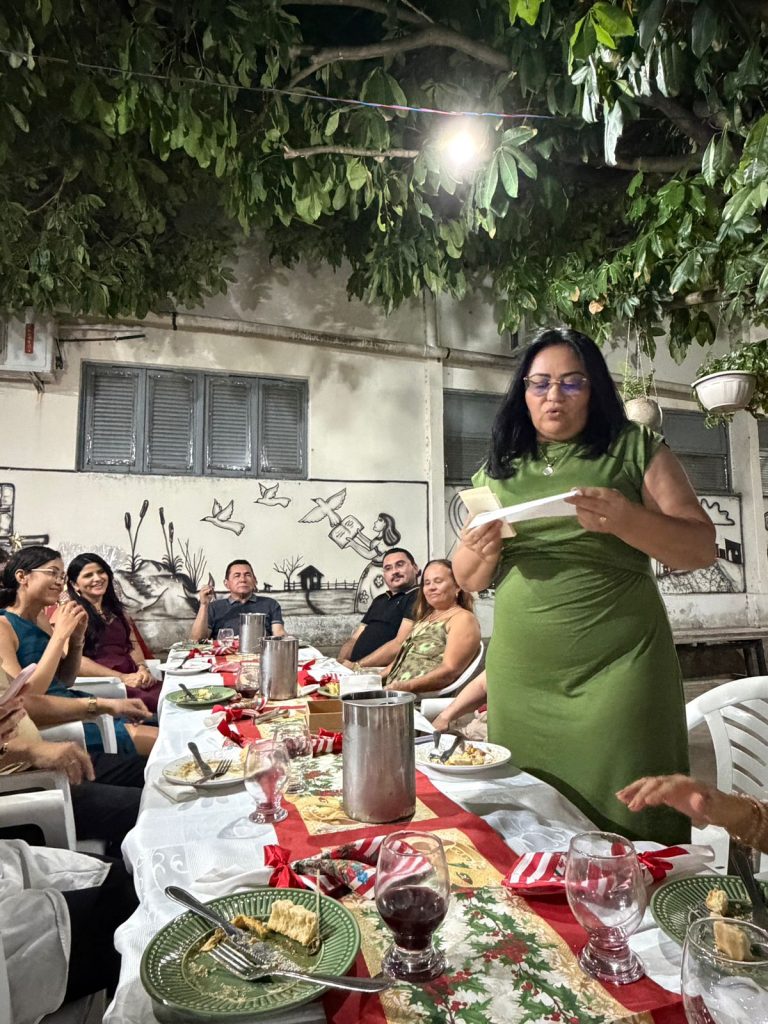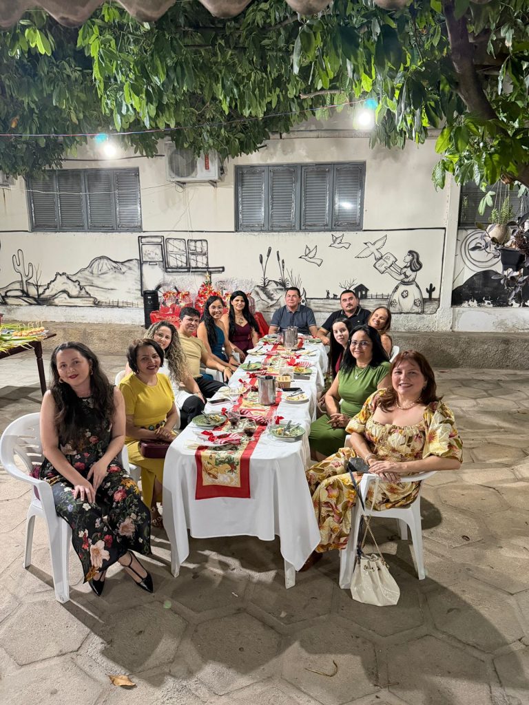 0s nove docentes e os dois técnicos administrativos lotados no DE/CAP (Departamento de Educação do Campus Avançado de Patu) compareceram ao evento e se confraternizaram em clima de muita alegria, paz e harmonia. Enfim, o clima de entretenimento foi predominante. O jantar, distribuição de presentes pelas professoras Dras. Edilma e Andreia, o discurso da professora Edilma e a distribuição do bolo fecharam o evento.